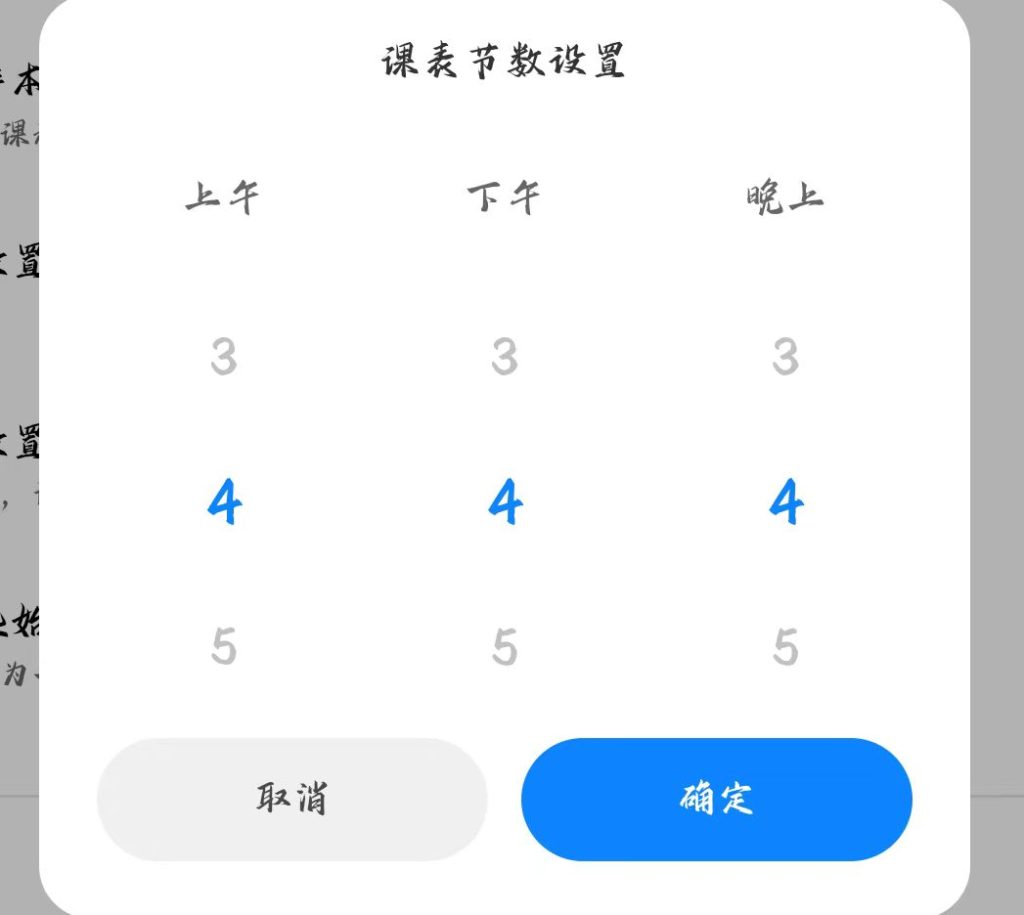课表节数选择上午4节,下午4节,晚上4节